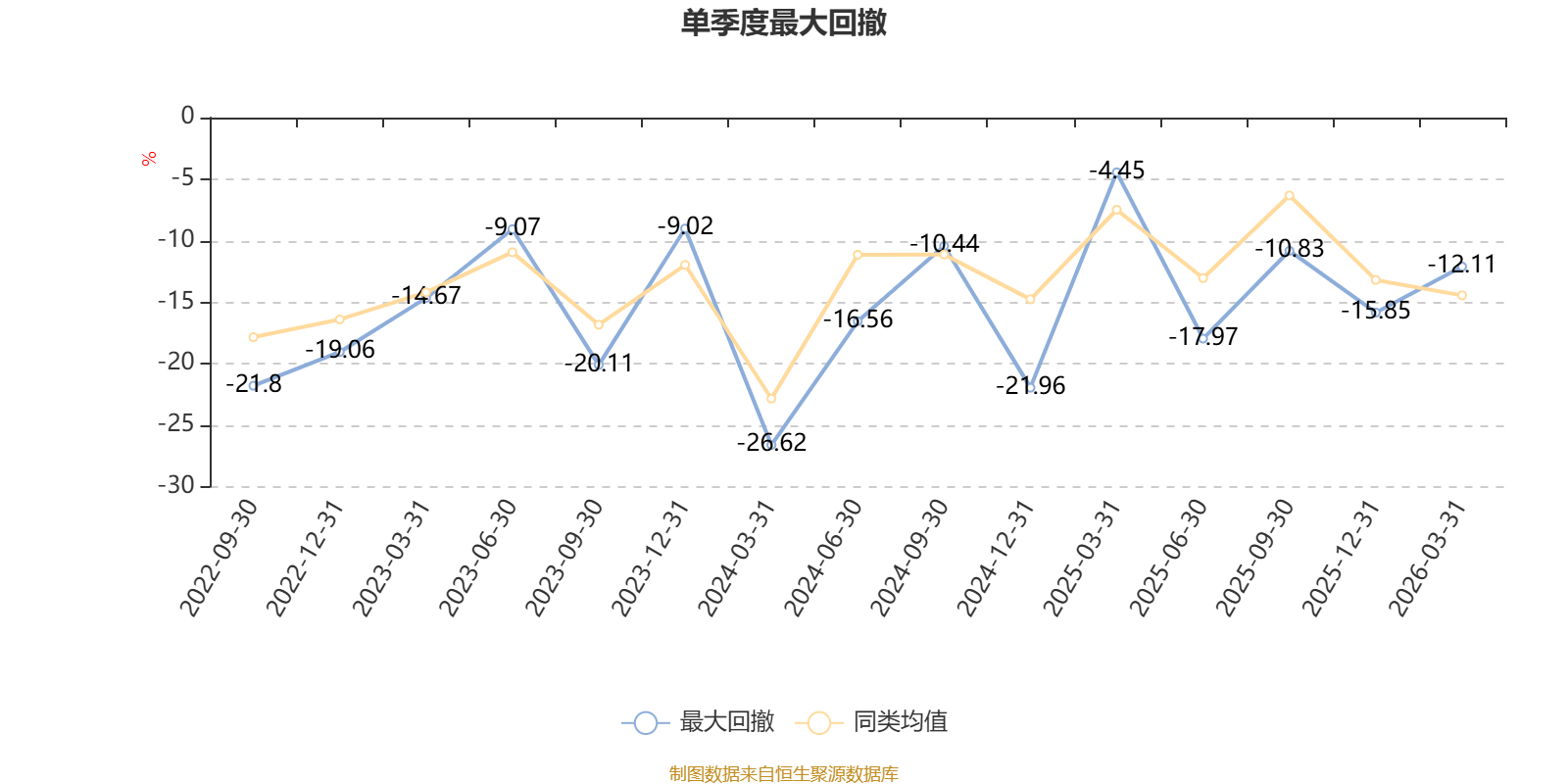 截至4月10日,基金近三年最大回撤为43.54%,同类可比基金排名53/72。单季度最大回撤出现在2024年一季度,为26.62%。
