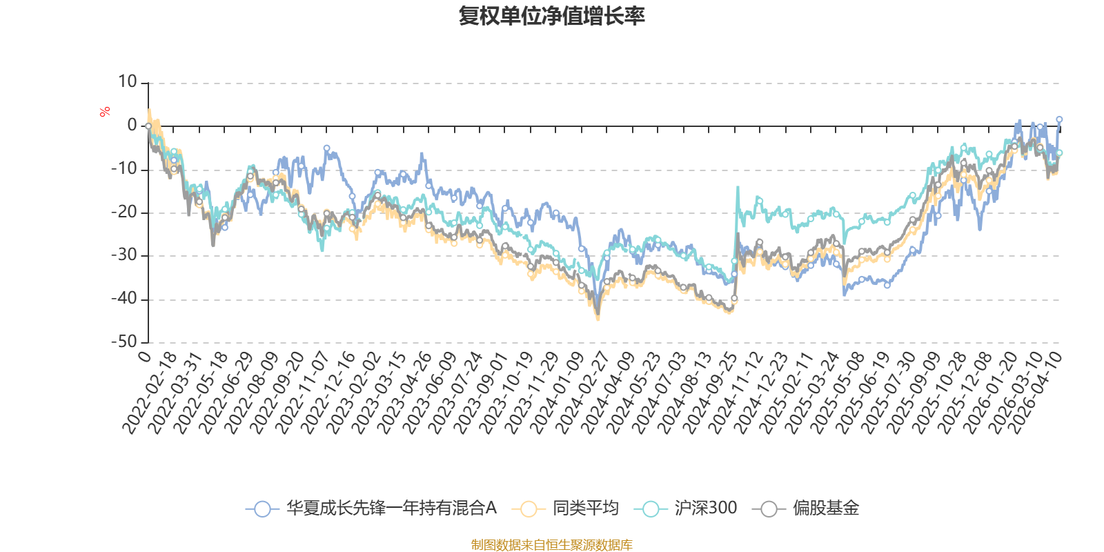 该基金属于偏股混合型基金。截至4月10日,单位净值为1.032元。基金经理是徐恒,目前管理的3只基金近一年均为正收益。其中,截至4月9日,华夏移动互联混合(QDII)(人民币)近一年复权单位净值增长率最高,达82.51%;截至4月10日,华夏成长先锋一年持有混合A最低,为63.24%。