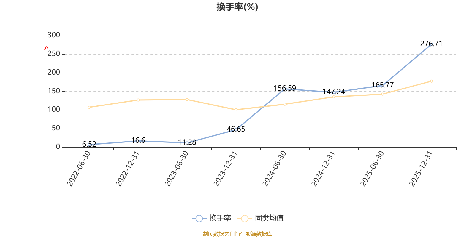 截至2025年12月31日,基金最近一年换手率约439.51%,持续2年高于同类均值。