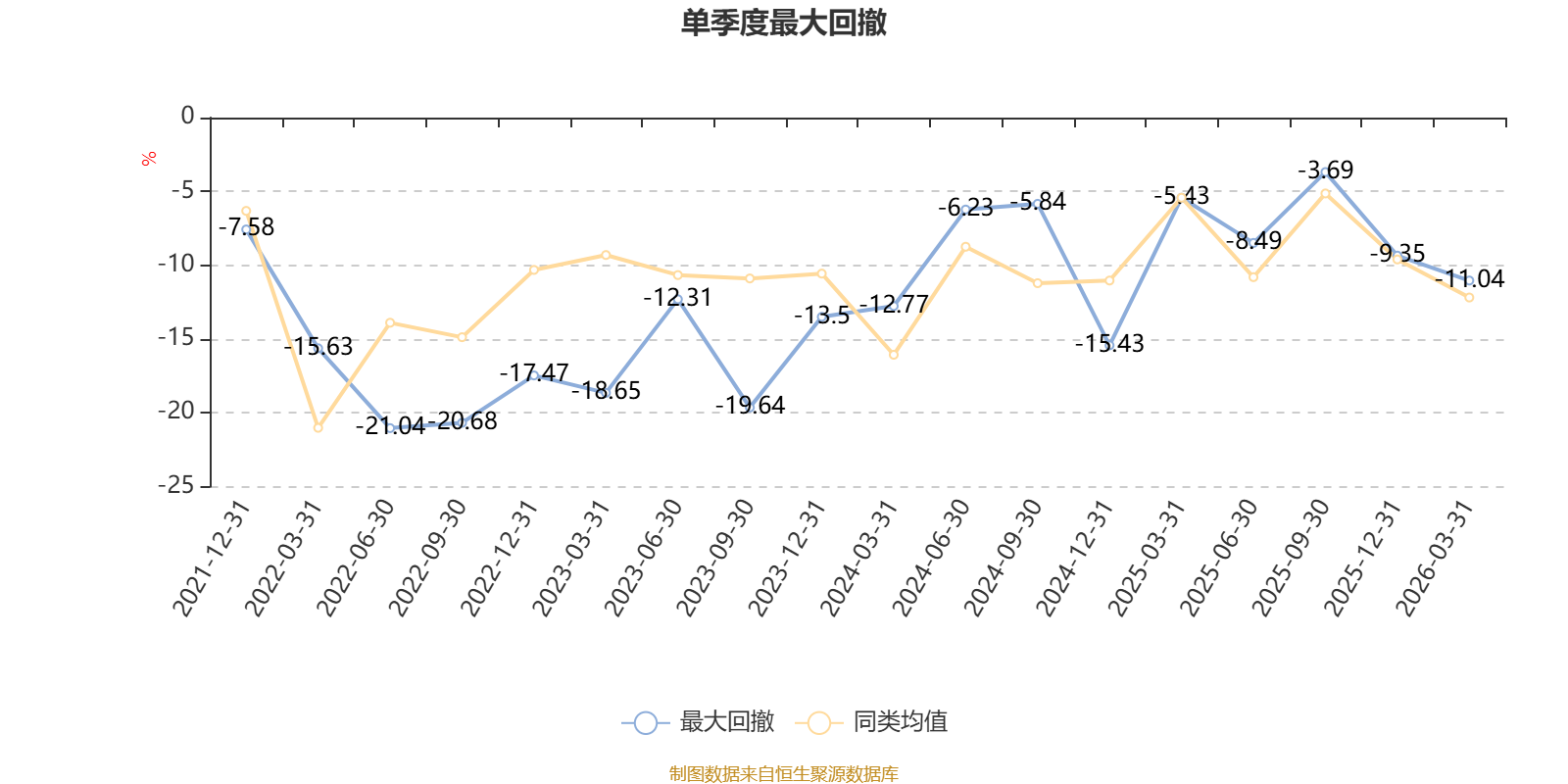 截至4月9日,基金近三年最大回撤为36.28%,同类可比基金排名118/178。单季度最大回撤出现在2022年二季度,为21.04%。
