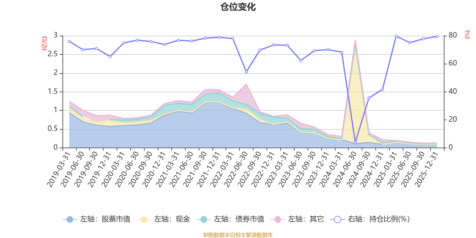 据定期报告数据统计,近三年平均股票仓位为61.35%,同类平均为67.52%。2025年一季度末基金达到79.71%的最高仓位,2024年上半年末最低,为3.83%。