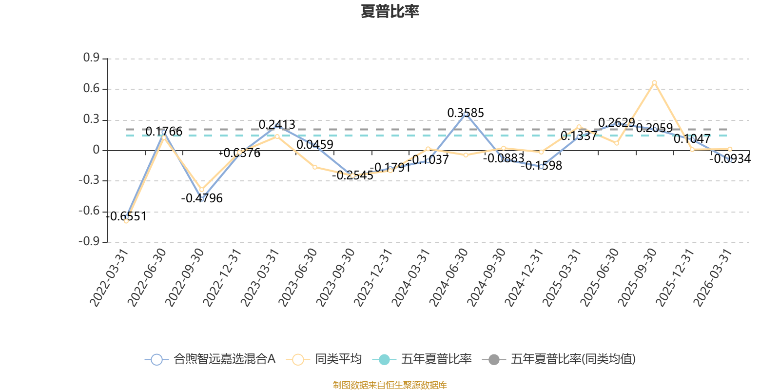 截至3月31日,基金近三年夏普比率为0.3063,位于同类可比基金94/124。