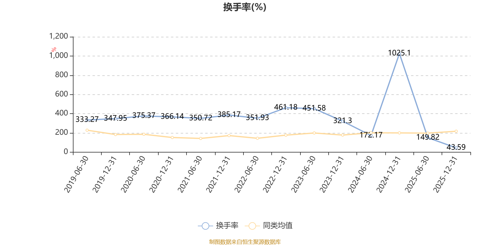 截至2025年12月31日,基金最近一年换手率约202.65%,持续1年低于同类均值。