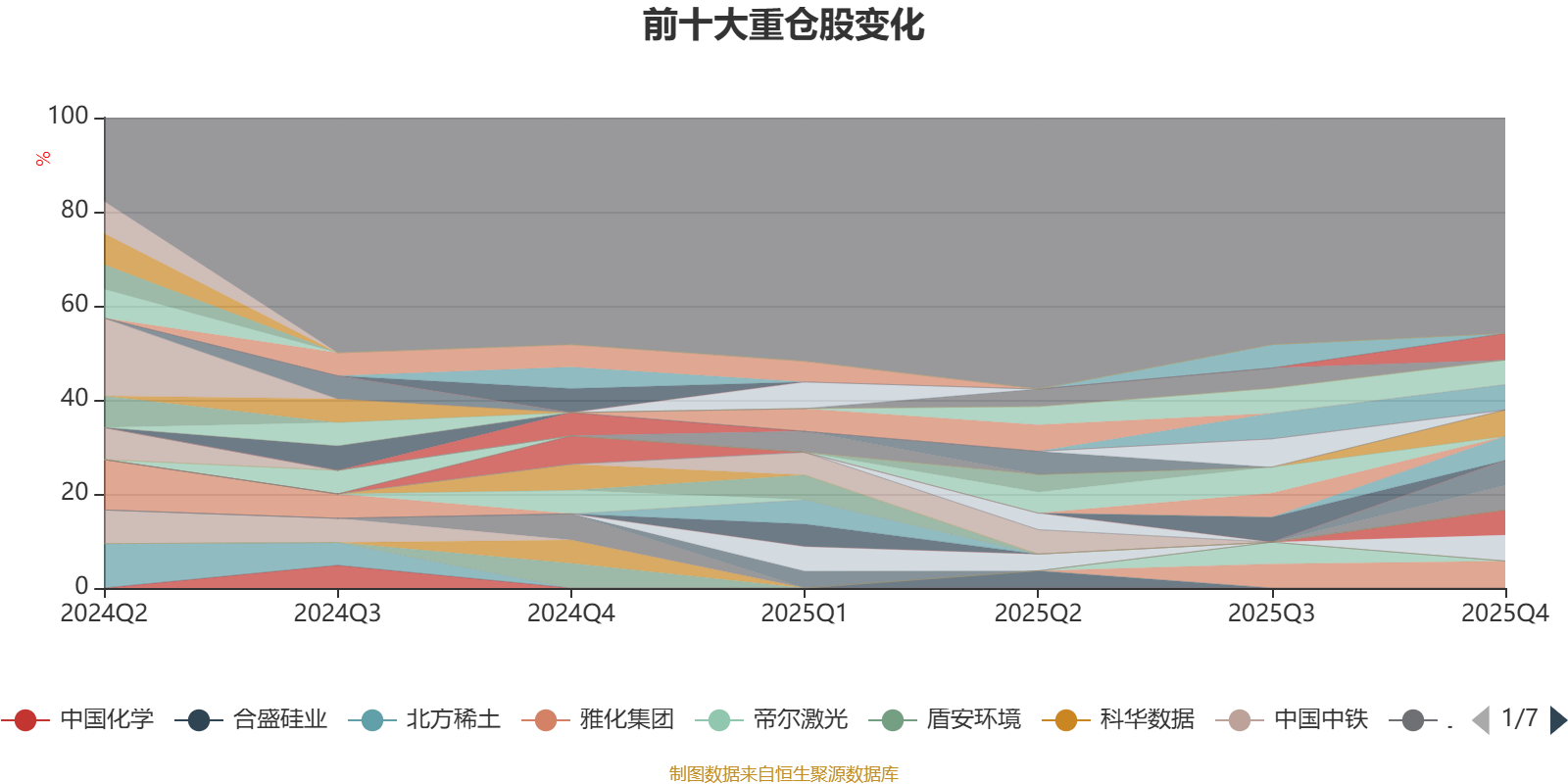 截至2025年末,基金十大重仓股分别是雅化集团、华鲁恒升、扬农化工、华友钴业、洪都航空、国城矿业、航发动力、中航西飞、中国稀土、中稀有色。