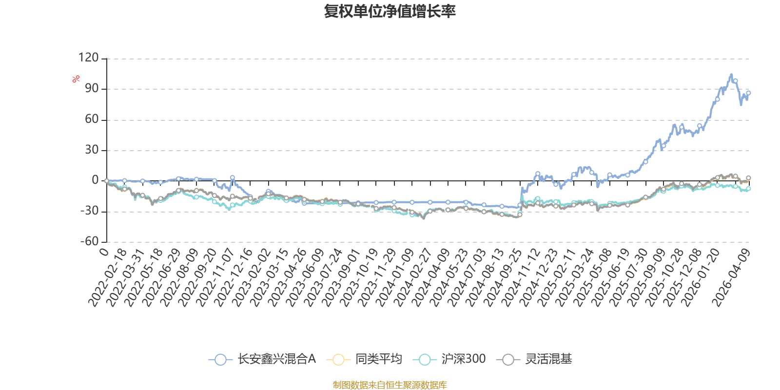 截至4月9日,长安鑫兴混合A近三个月复权单位净值增长率为6.74%,位于同类可比基金151/1287;近半年复权单位净值增长率为19.88%,位于同类可比基金75/1286;近一年复权单位净值增长率为94.31%,位于同类可比基金97/1286;近三年复权单位净值增长率为135.86%,位于同类可比基金12/1286。
