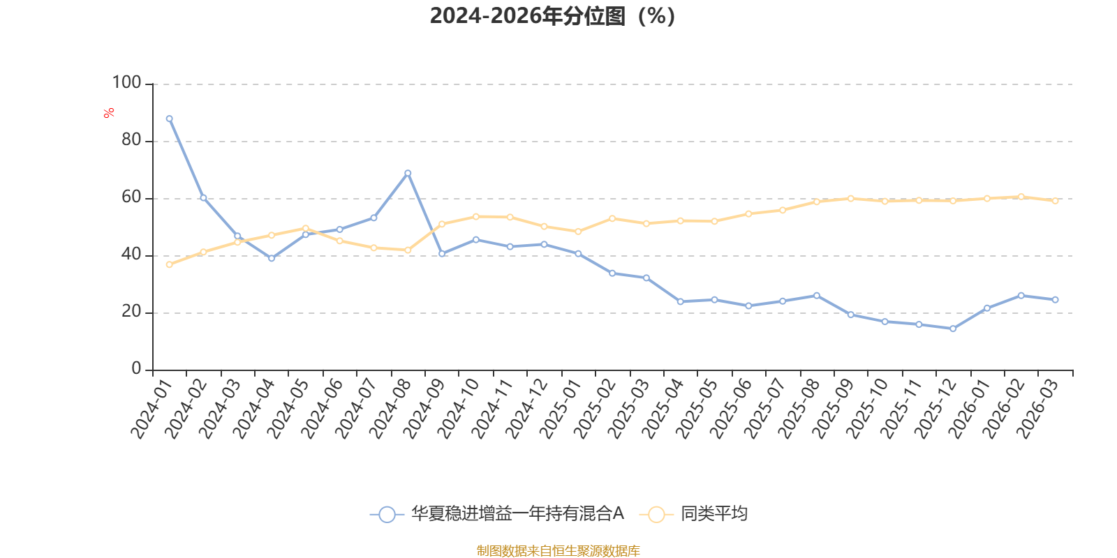 通过所选区间该基金净值增长率分位图,可以观察该基金与同类基金业绩比较情况。图为坐标原点到区间内某时点的净值增长率在同类基金中的分位数。