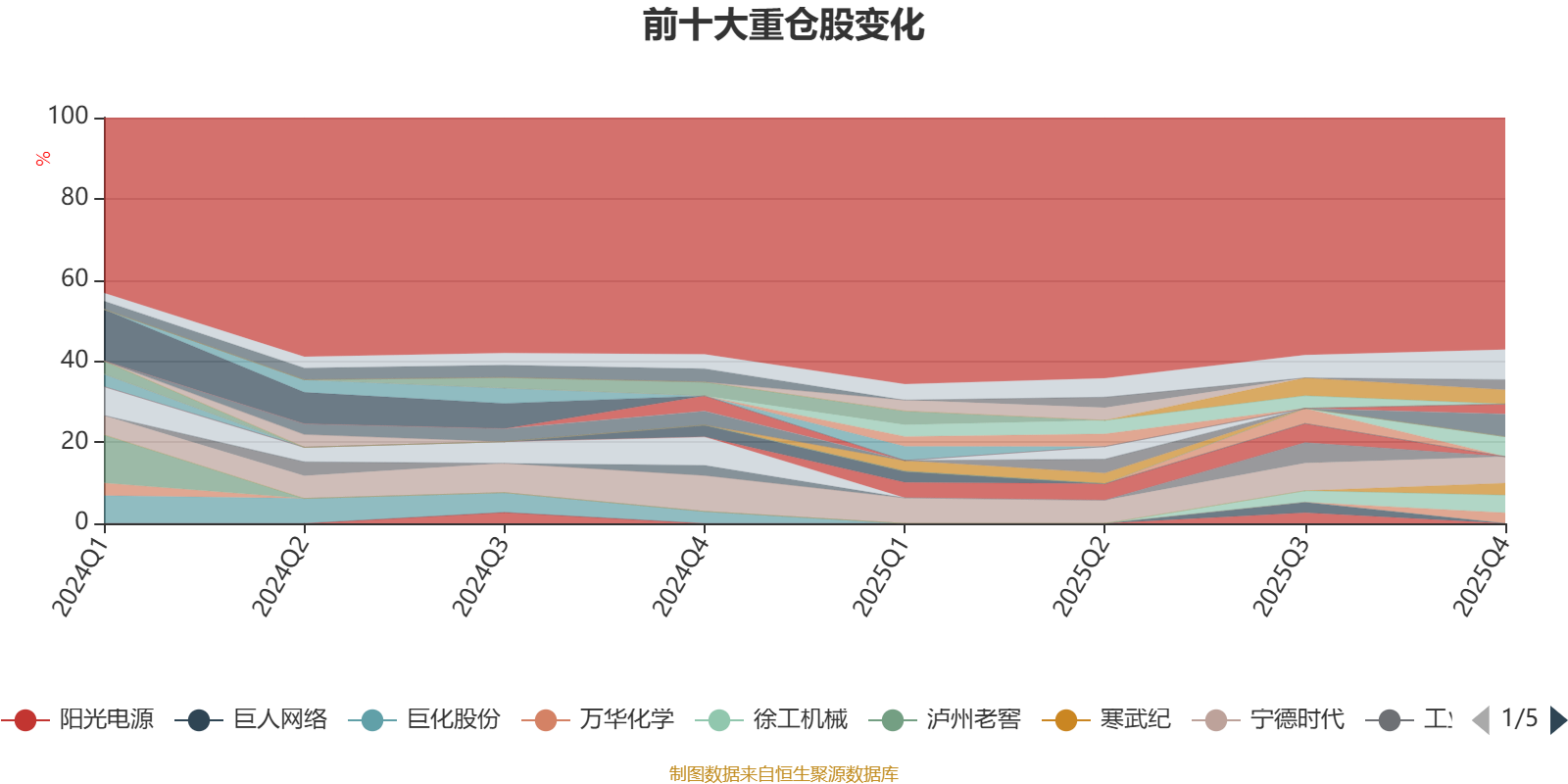 截至2025年末,基金十大重仓股分别是紫金矿业、宁德时代、新易盛、中国平安、徐工机械、中际旭创、寒武纪、万华化学、赤峰黄金、美的集团。