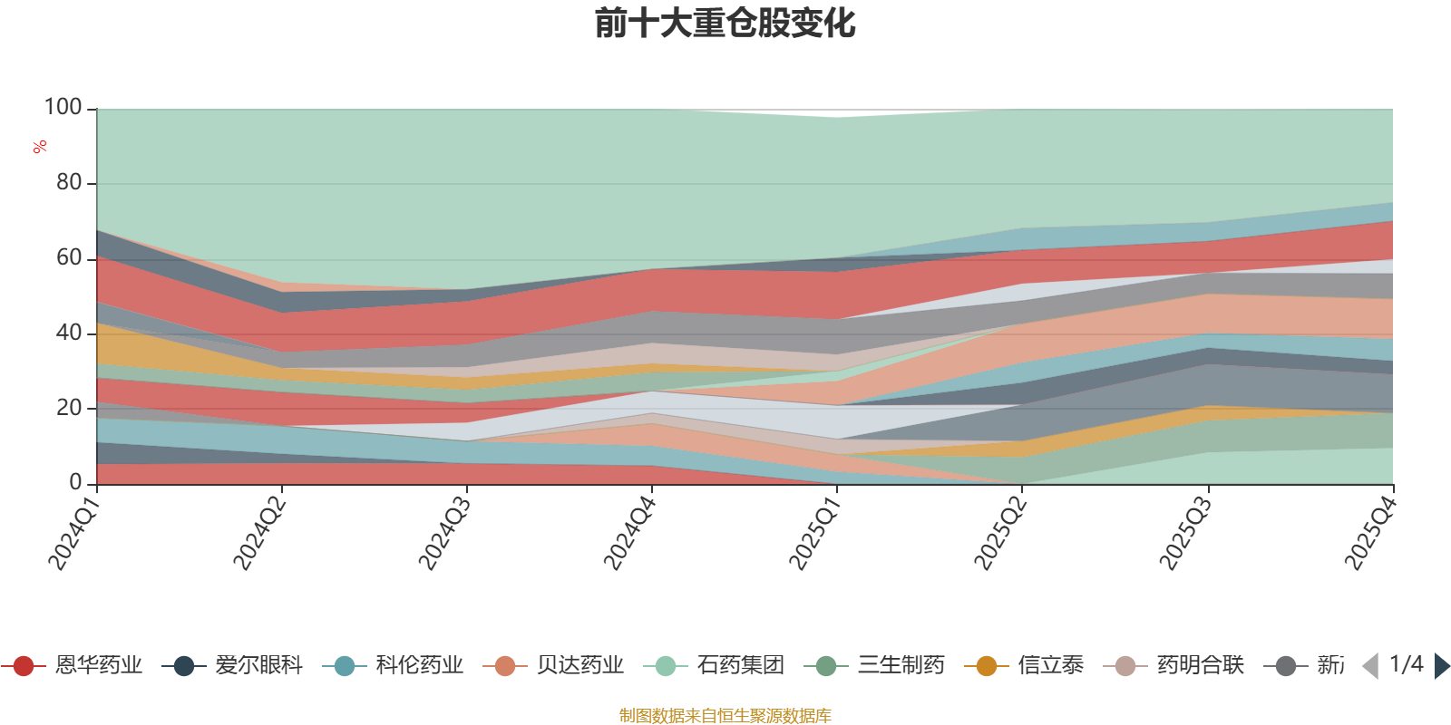 该基金持股集中度较高。截至2025年末,基金十大重仓股分别是科伦博泰生物-B、信达生物、恒瑞医药、石药集团、三生制药、海思科、泽璟制药、百利天恒、热景生物、新诺威。
