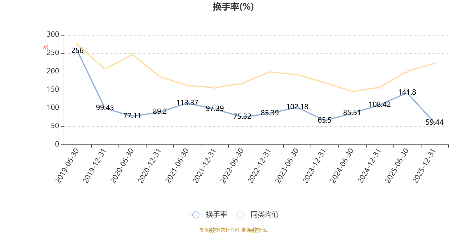 截至2025年12月31日,基金最近一年换手率约177.12%,持续低于同类均值。