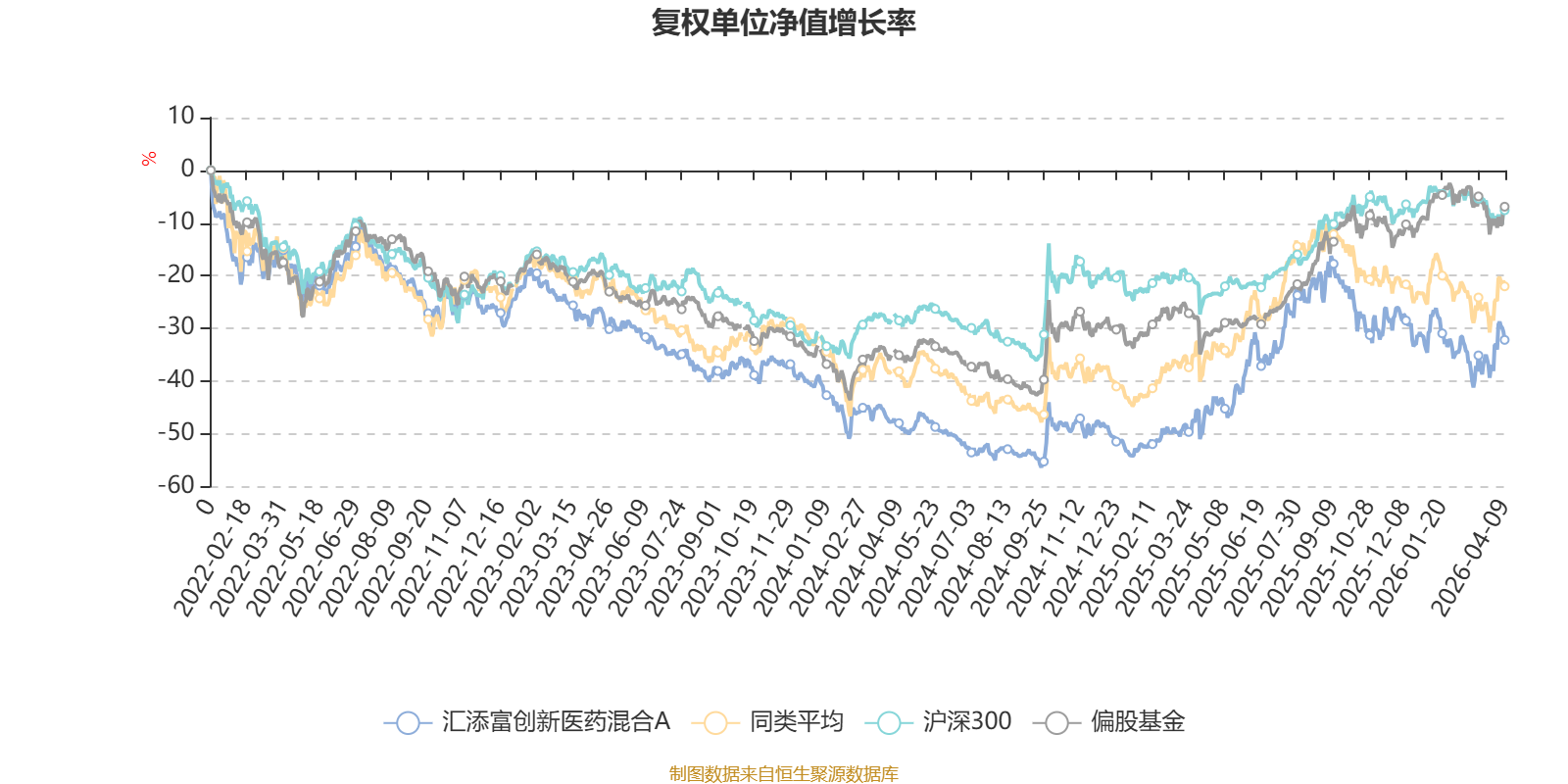 截至4月9日,汇添富创新医药混合A近三个月复权单位净值增长率为-7.66%,位于同类可比基金71/106;近半年复权单位净值增长率为-10.22%,位于同类可比基金64/106;近一年复权单位净值增长率为35.09%,位于同类可比基金29/104;近三年复权单位净值增长率为-7.29%,位于同类可比基金49/78。