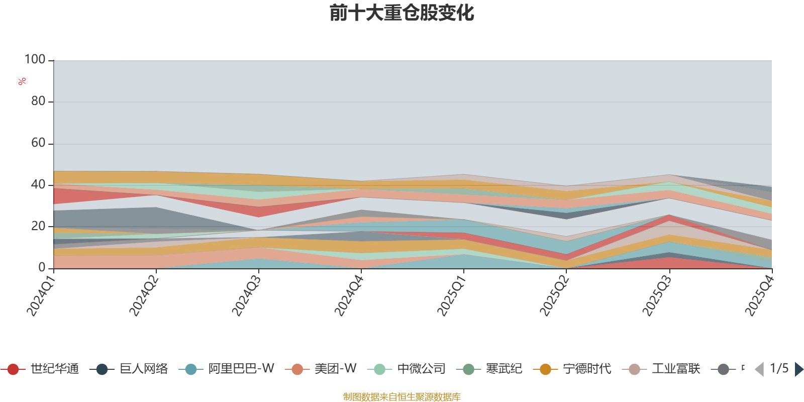 截至2025年末,基金十大重仓股分别是腾讯控股、新易盛、中国东方航空股份、宁德时代、阿里巴巴-W、北方华创、中际旭创、紫金矿业、中国黄金国际、寒武纪。