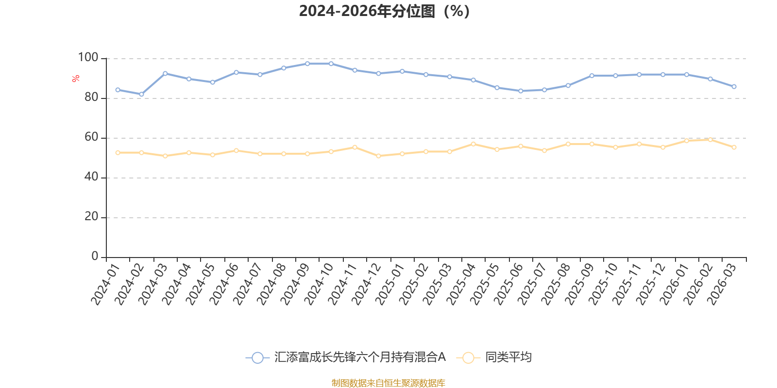 通过所选区间该基金净值增长率分位图,可以观察该基金与同类基金业绩比较情况。图为坐标原点到区间内某时点的净值增长率在同类基金中的分位数。