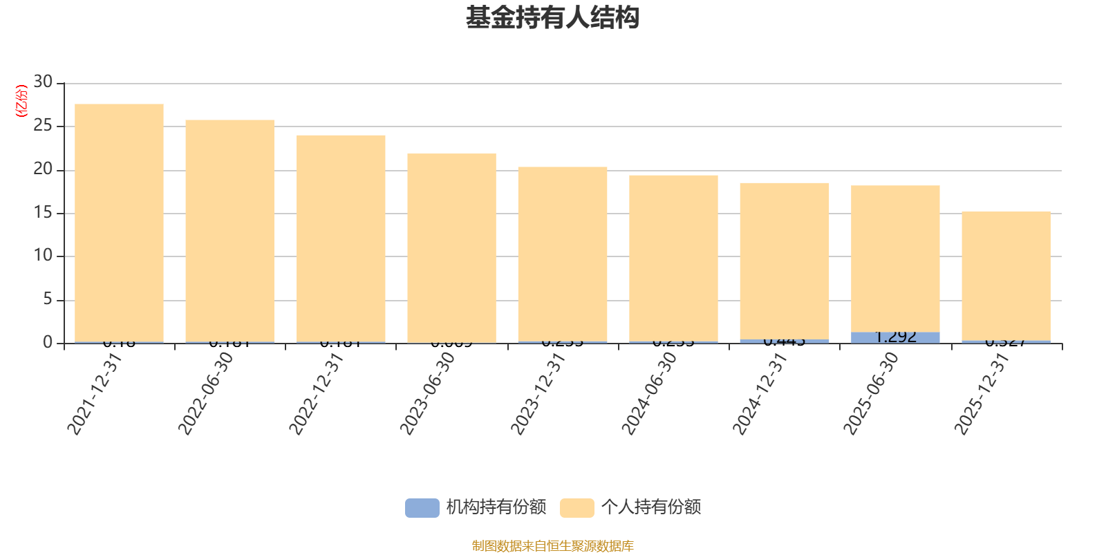 截至2025年12月31日,基金持有人共计1.71万户,合计持有15.18亿份。其中管理人员工持有397.03万份,占比0.26%,机构持有份额占比2.15%,个人投资者占比97.85%。