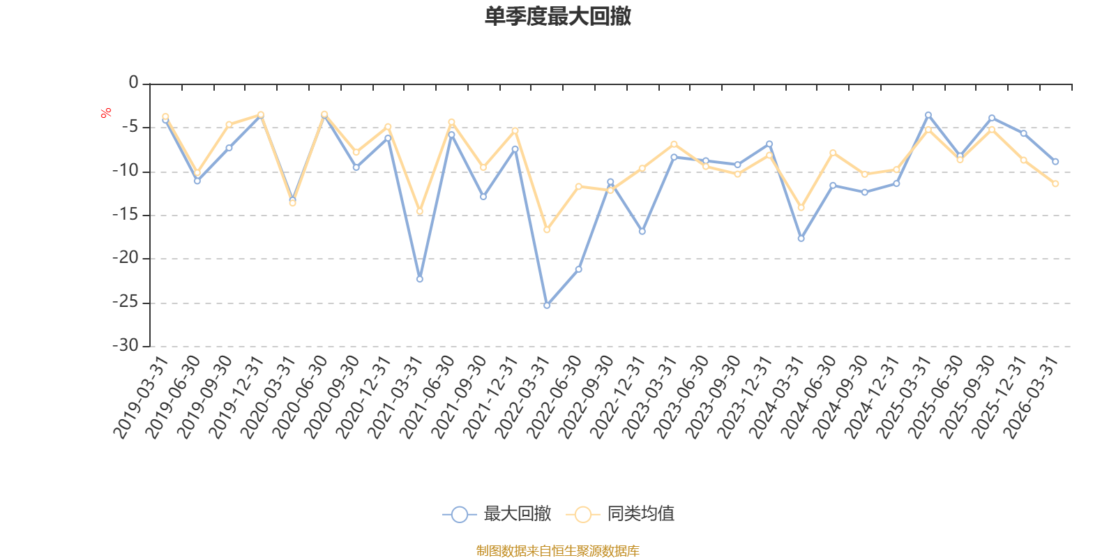 截至4月9日,基金近三年最大回撤为30.3%,同类可比基金排名611/1264。单季度最大回撤出现在2022年一季度,为25.33%。