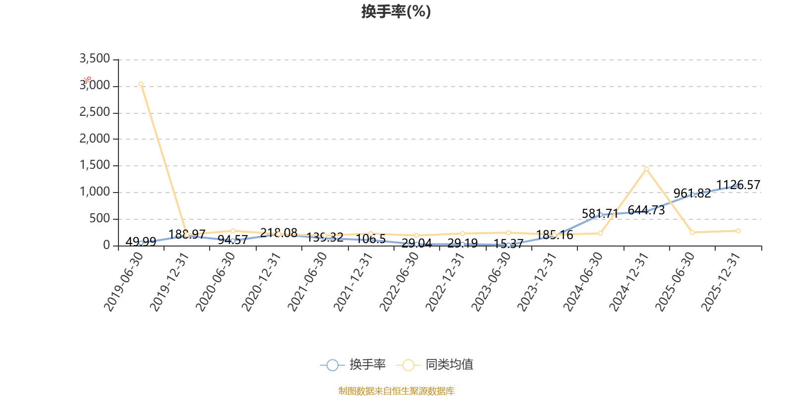 截至2025年12月31日,基金最近一年换手率约2089.63%,持续1年高于同类均值。