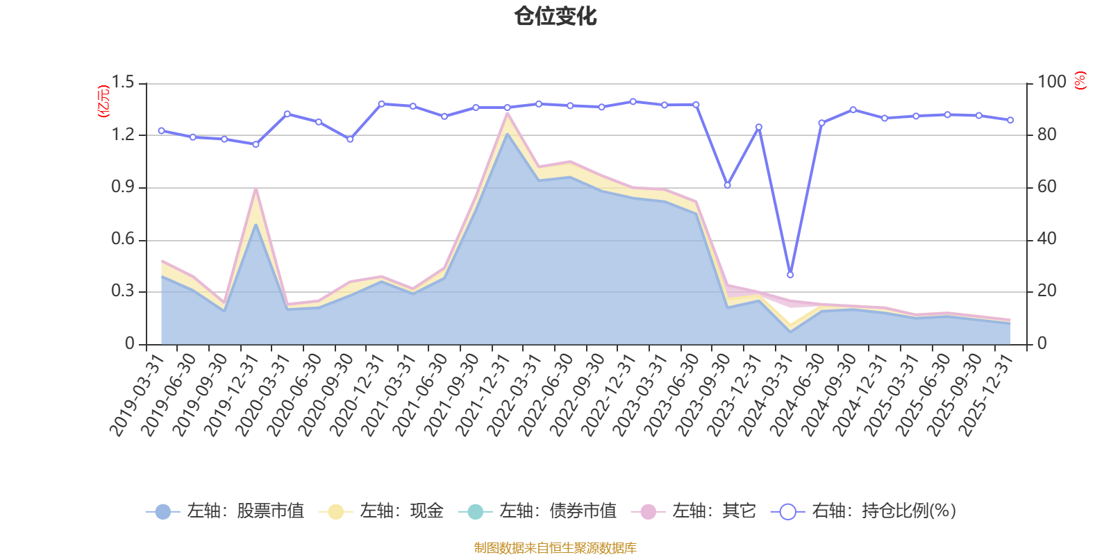 据定期报告数据统计,近三年平均股票仓位为80.39%,同类平均为72.57%。2022年末基金达到93%的最高仓位,2024年一季度末最低,为26.67%。