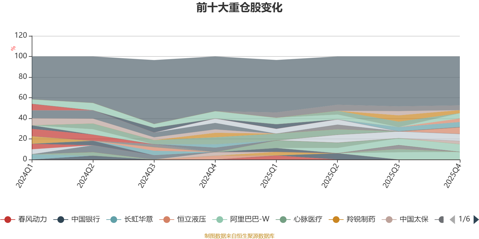 截至2025年末,基金十大重仓股分别是宇通客车、阿里巴巴-W、隆鑫通用、腾讯控股、海尔智家、香港交易所、TCL电子、山东黄金、英科医疗、新华保险。