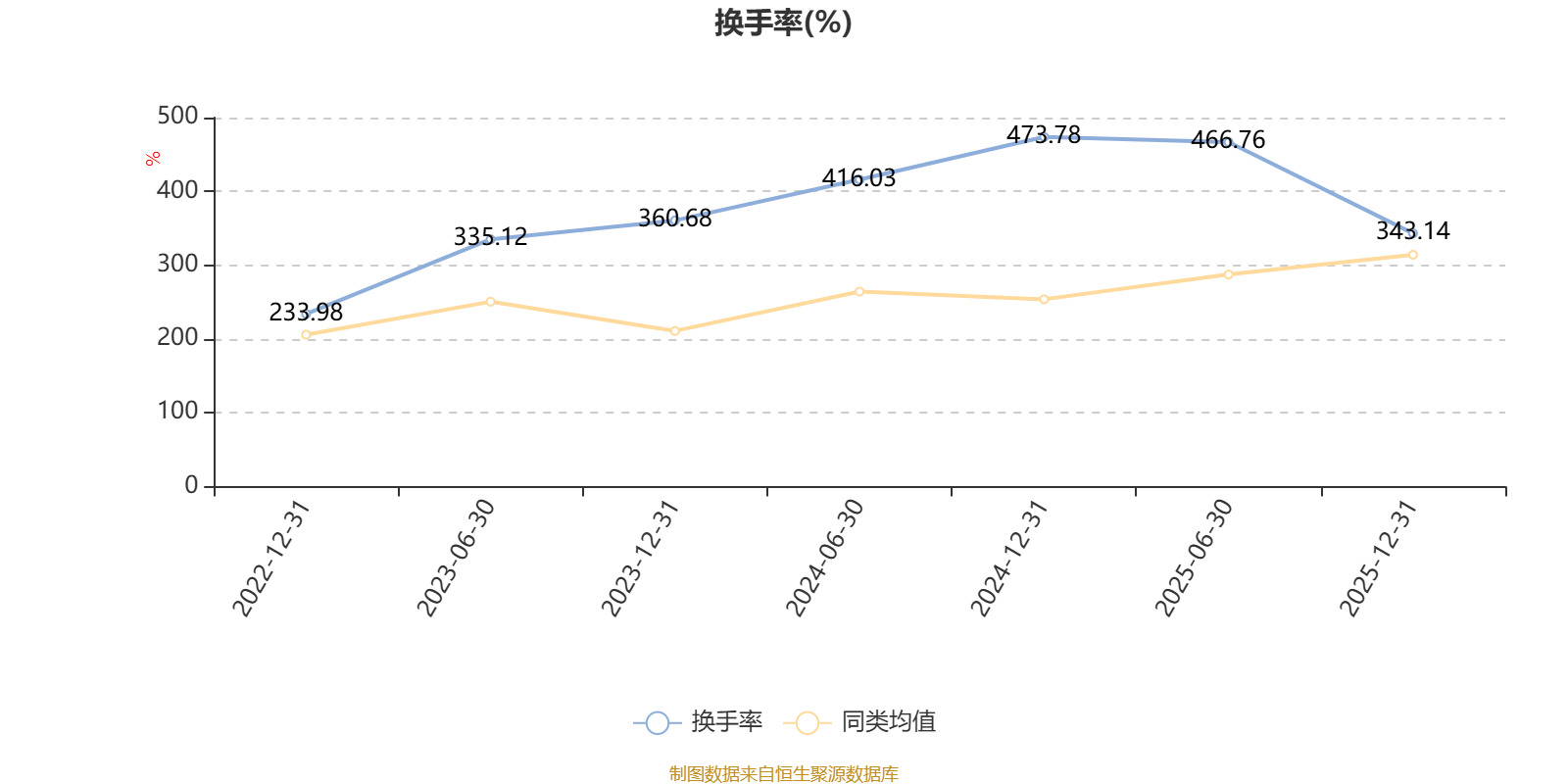 截至2025年12月31日,基金最近一年换手率约837.99%,持续高于同类均值。