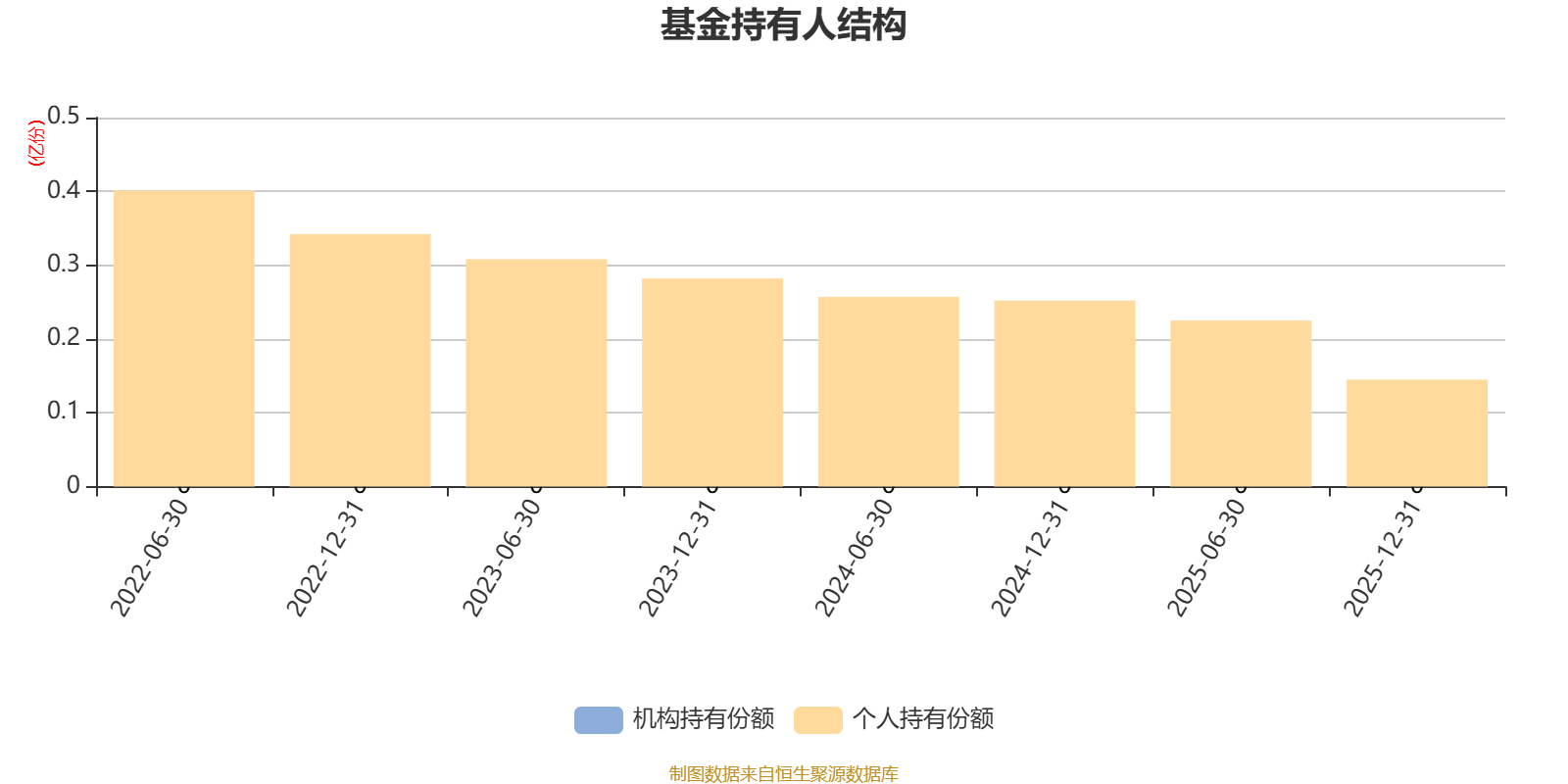 截至2025年12月31日,基金持有人共计416户,合计持有1447.1万份。其中管理人员工持有139.77万份,占比9.66%,机构持有份额占比0.00%,个人投资者占比100.00%。