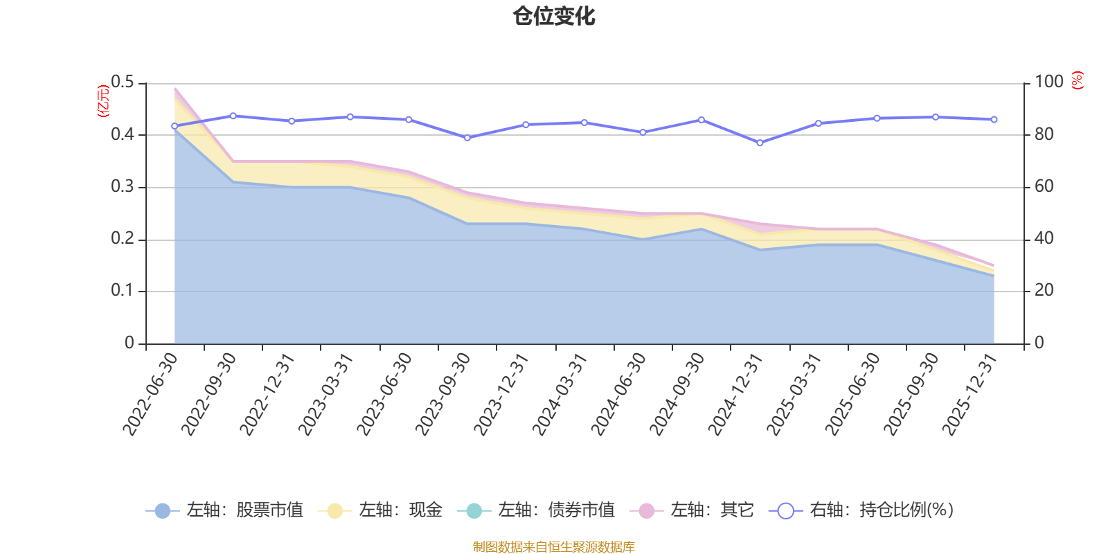 据定期报告数据统计,近三年平均股票仓位为84.1%,同类平均为84.04%。2022年三季度末基金达到87.44%的最高仓位,2024年末最低,为77.11%。