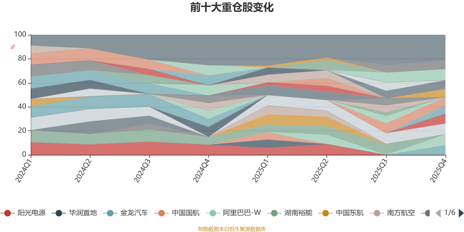 该基金持股集中度较高,近2年前十大重仓股集中度长期超过60%。截至2025年末,基金十大重仓股分别是通威股份、宁德时代、阿里巴巴-W、金龙汽车、欣旺达、晶科能源、天合光能、中创新航、瑞浦兰钧、亿纬锂能。