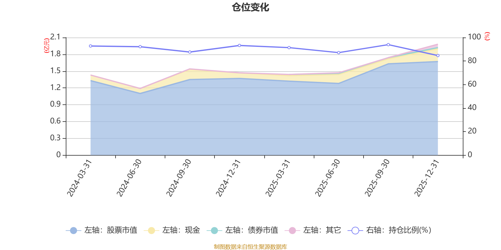 据定期报告数据统计,成立以来平均股票仓位为90.38%,同类平均为85.83%。2025年三季度末基金达到93.93%的最高仓位,2025年末最低,为84.67%。
