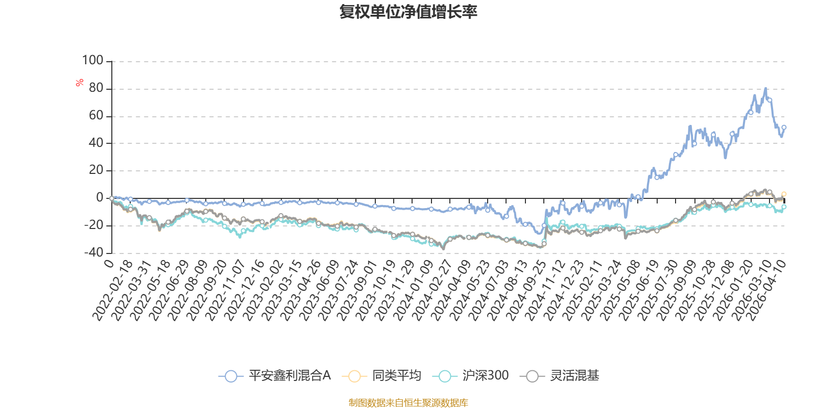 截至4月10日,平安鑫利混合A近三个月复权单位净值增长率为-5.21%,位于同类可比基金1063/1287;近半年复权单位净值增长率为4.15%,位于同类可比基金620/1286;近一年复权单位净值增长率为64.84%,位于同类可比基金211/1286;近三年复权单位净值增长率为55.58%,位于同类可比基金142/1286。