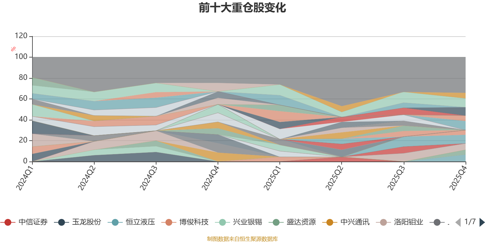 该基金持股集中度较高。截至2025年末,基金十大重仓股分别是新易盛、紫金矿业、寒武纪、中际旭创、恒立液压、洛阳钼业、新华保险、山金国际、盛达资源、藏格矿业。