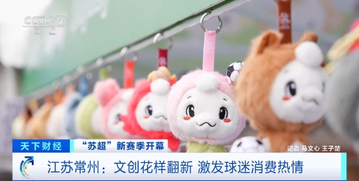 去年苏超,各地花样迭出的文创产品令人印象深刻。今年,赛事第一天,在常州市奥体中心场馆外,一条临时搭起的市集成了球迷狂欢的“第二现场”。观众们还没进球场,就已经开始为“心动”买单。