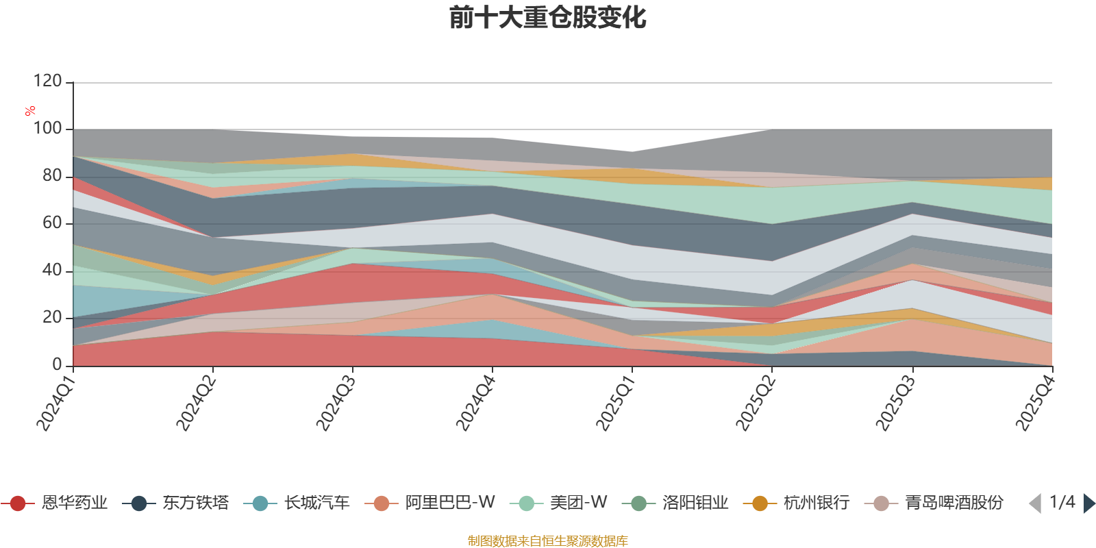 该基金持股集中度较高,近2年前十大重仓股集中度长期超过60%。截至2025年末,基金十大重仓股分别是海尔智家、宁德时代、阿里巴巴-W、亚钾国际、腾讯控股、华虹半导体、中国海洋石油、美的集团、紫金矿业、格力电器。