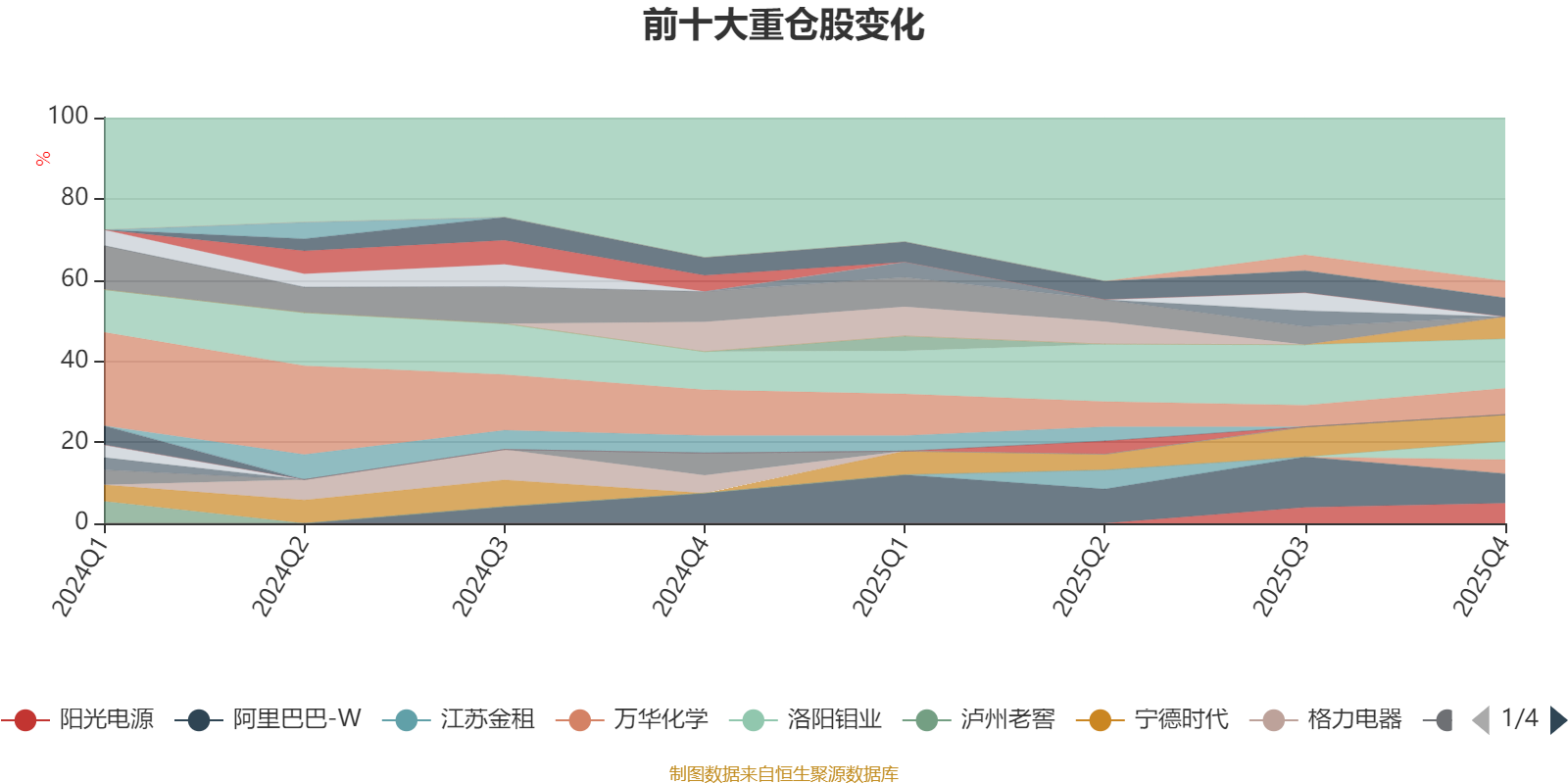 该基金持股集中度较高。截至2025年末,基金十大重仓股分别是腾讯控股、阿里巴巴-W、宁德时代、中国海洋石油、天山铝业、阳光电源、紫金矿业、洛阳钼业、中国黄金国际、万华化学。