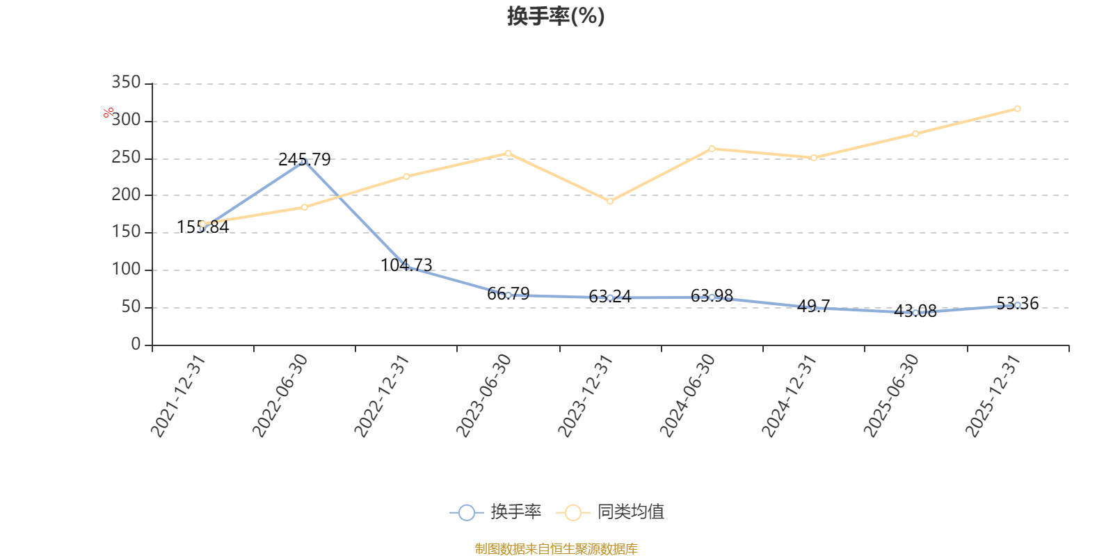 截至2025年12月31日,基金最近一年换手率约96.79%,持续3年低于同类均值。