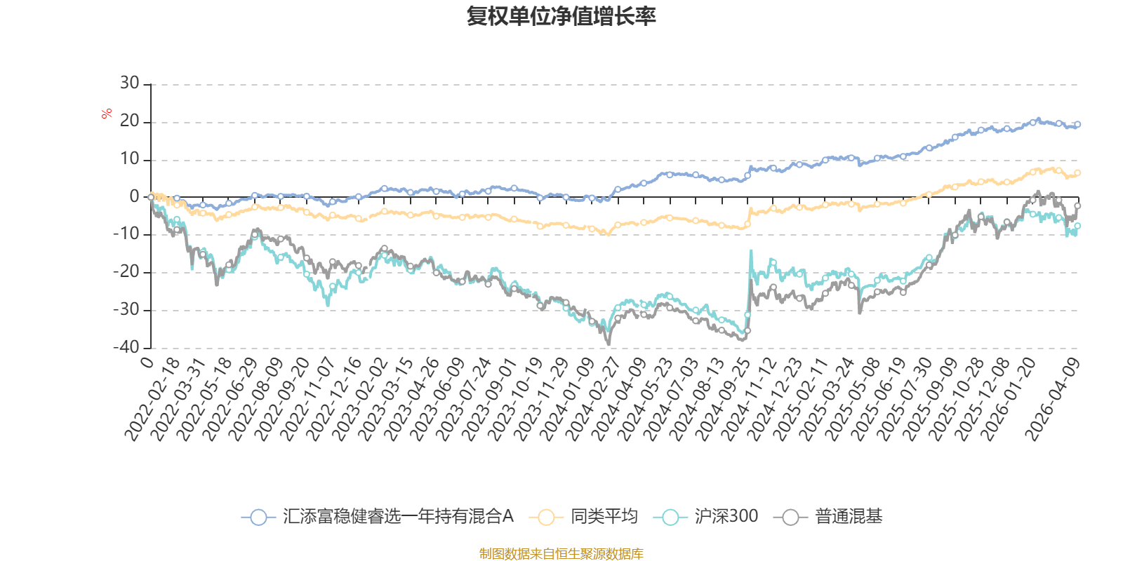 截至4月9日,汇添富稳健睿选一年持有混合A近三个月复权单位净值增长率为0.10%,位于同类可比基金325/629;近半年复权单位净值增长率为1.10%,位于同类可比基金303/629;近一年复权单位净值增长率为9.98%,位于同类可比基金186/629;近三年复权单位净值增长率为16.99%,位于同类可比基金114/581。
