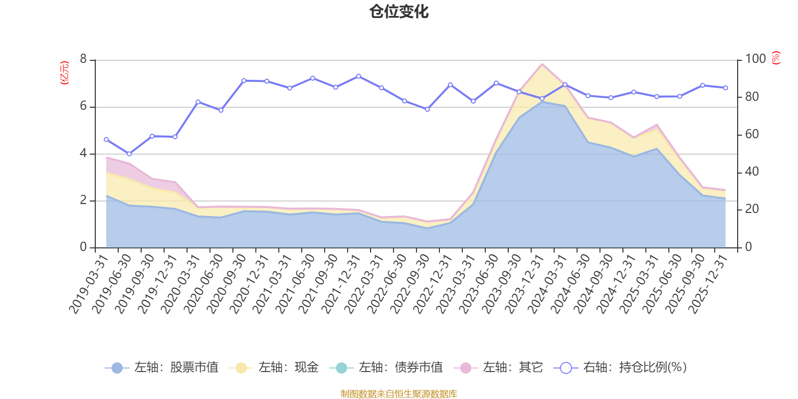 据定期报告数据统计,近三年平均股票仓位为82.58%,同类平均为85.83%。2021年末基金达到91.24%的最高仓位,2019年上半年末最低,为49.94%。