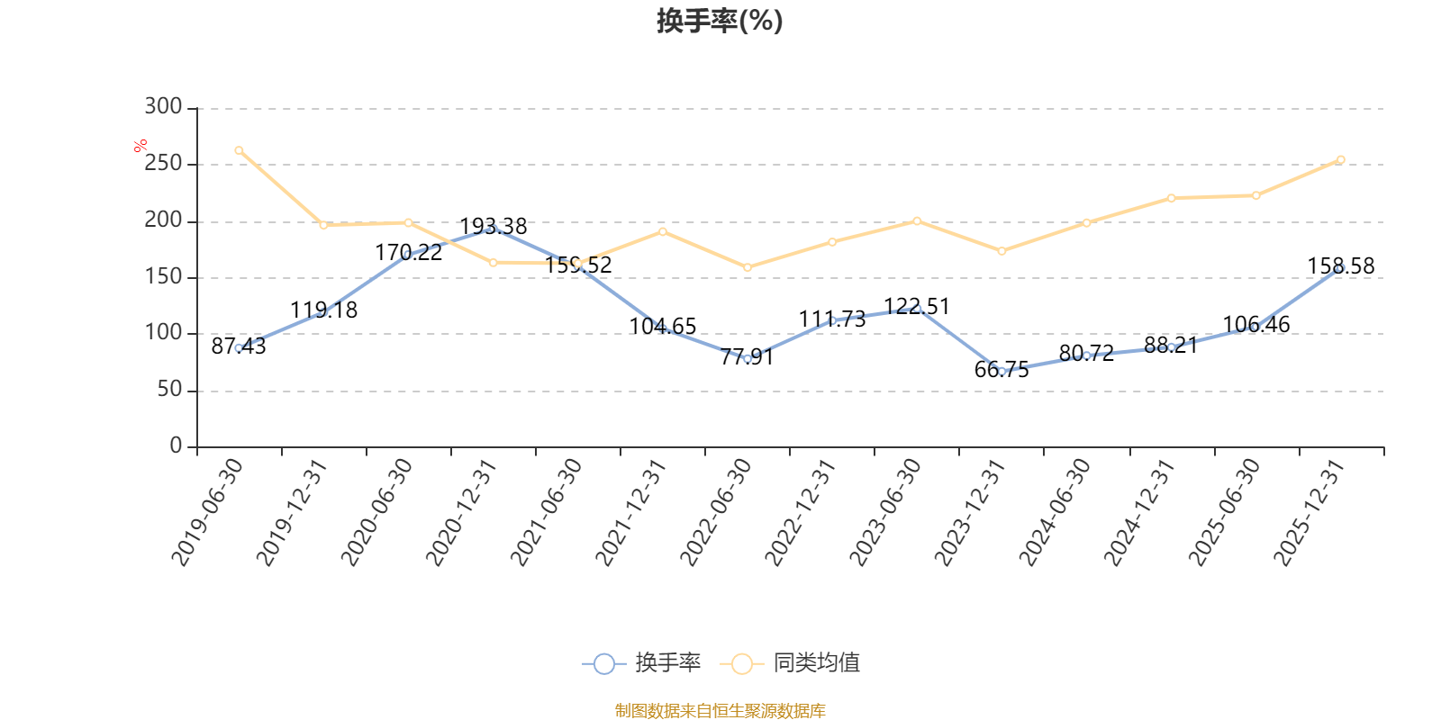 截至2025年12月31日,基金最近一年换手率约254.32%,持续5年低于同类均值。