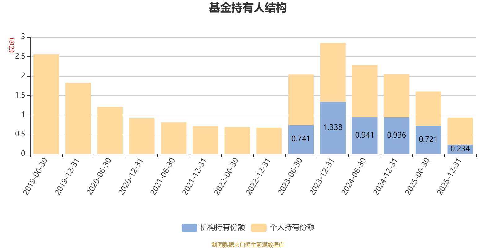 截至2025年12月31日,基金持有人共计8375户,合计持有9284.36万份。其中管理人员工持有81.33万份,占比0.88%,机构持有份额占比25.22%,个人投资者占比74.78%。