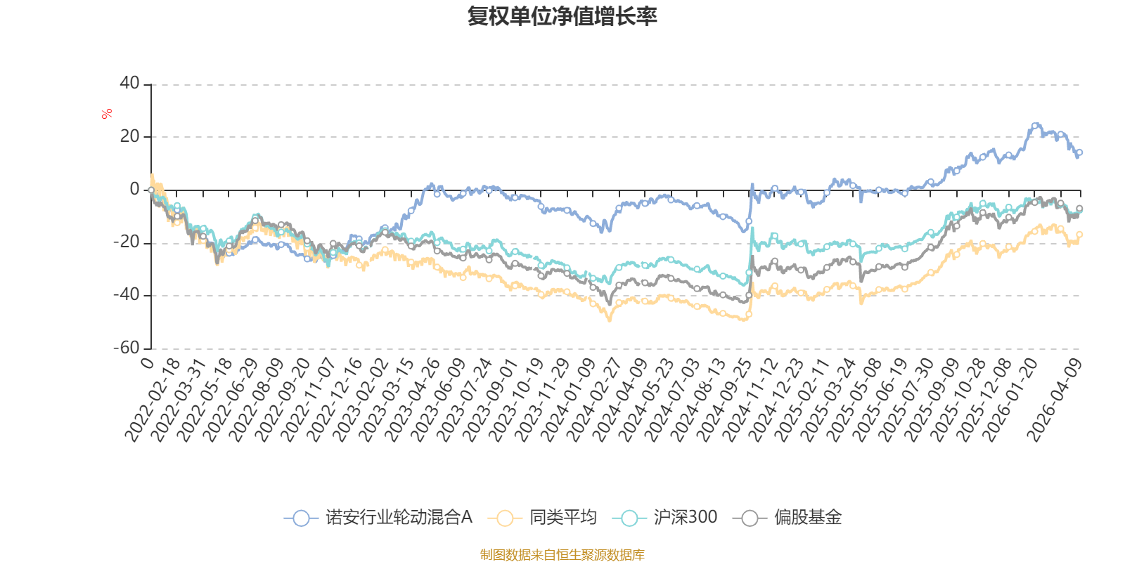 截至4月9日,诺安行业轮动混合A近三个月复权单位净值增长率为-5.23%,位于同类可比基金470/621;近半年复权单位净值增长率为0.02%,位于同类可比基金338/621;近一年复权单位净值增长率为15.18%,位于同类可比基金533/618;近三年复权单位净值增长率为13.76%,位于同类可比基金281/559。