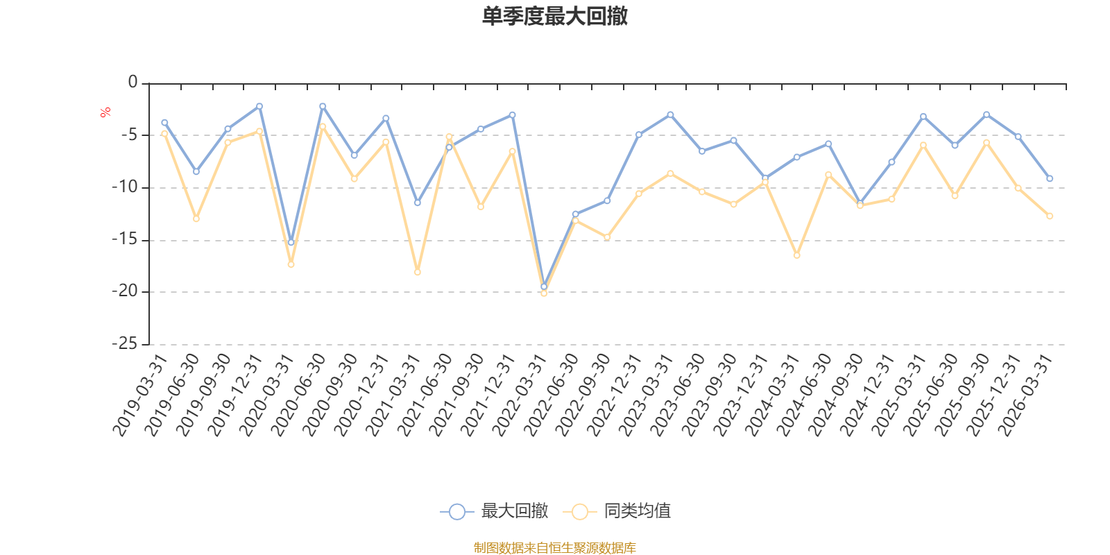 截至4月9日,基金近三年最大回撤为18.5%,同类可比基金排名18/549。单季度最大回撤出现在2022年一季度,为19.46%。