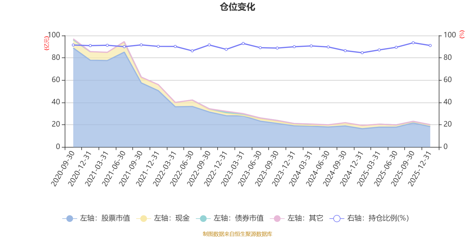 据定期报告数据统计,近三年平均股票仓位为89.47%,同类平均为87.64%。2025年三季度末基金达到93.54%的最高仓位,2024年末最低,为84.62%。