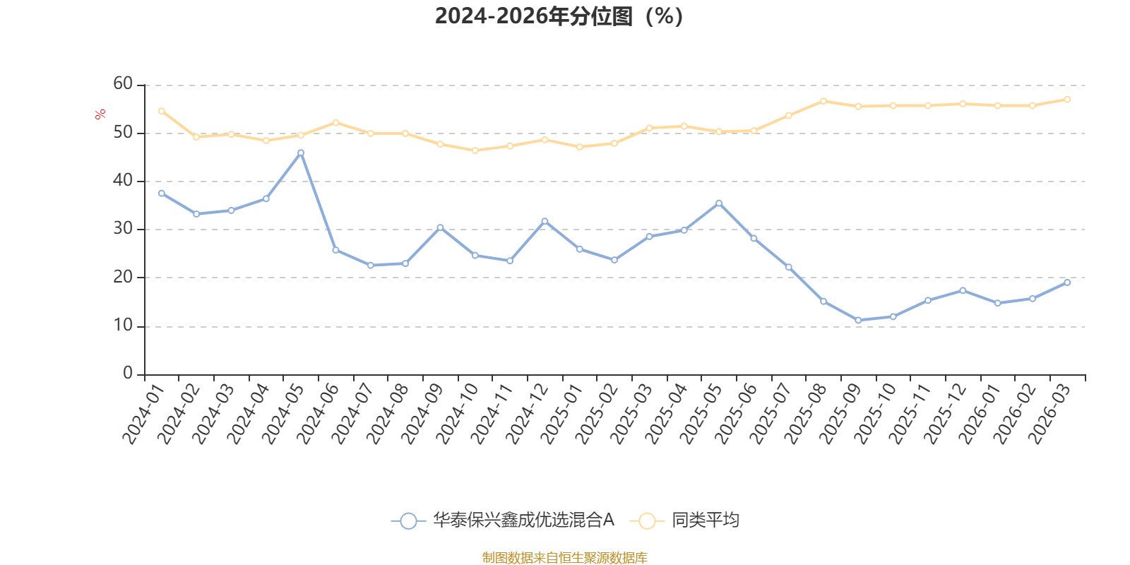 通过所选区间该基金净值增长率分位图,可以观察该基金与同类基金业绩比较情况。图为坐标原点到区间内某时点的净值增长率在同类基金中的分位数。