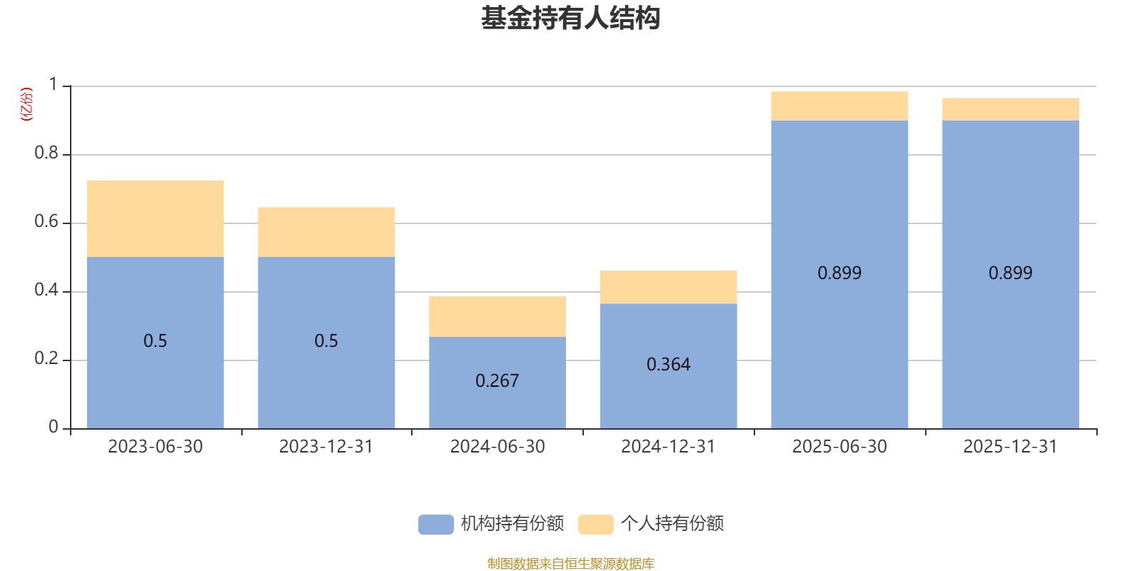 截至2025年12月31日,基金持有人共计1334户,合计持有9646.81万份。其中管理人员工持有5.76万份,占比0.06%,机构持有份额占比93.23%,个人投资者占比6.77%。