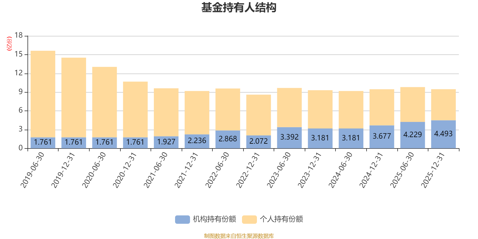 截至2025年12月31日,基金持有人共计3.46万户,合计持有9.46亿份。其中管理人员工持有6103.14份,机构持有份额占比47.48%,个人投资者占比52.52%。