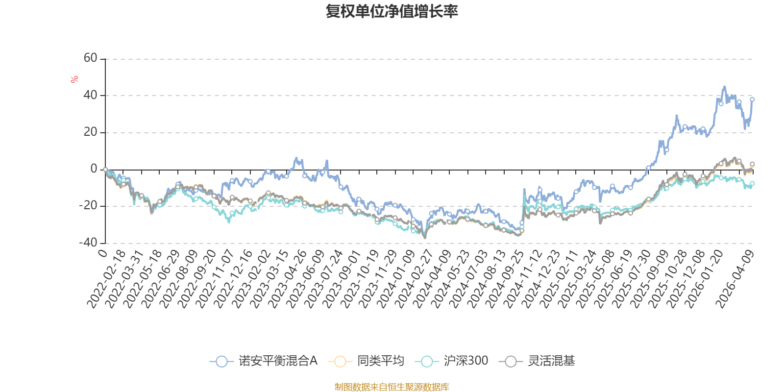 截至4月9日,诺安平衡混合A近三个月复权单位净值增长率为2.64%,位于同类可比基金294/1287;近半年复权单位净值增长率为6.35%,位于同类可比基金362/1286;近一年复权单位净值增长率为61.59%,位于同类可比基金248/1286;近三年复权单位净值增长率为29.30%,位于同类可比基金353/1286。