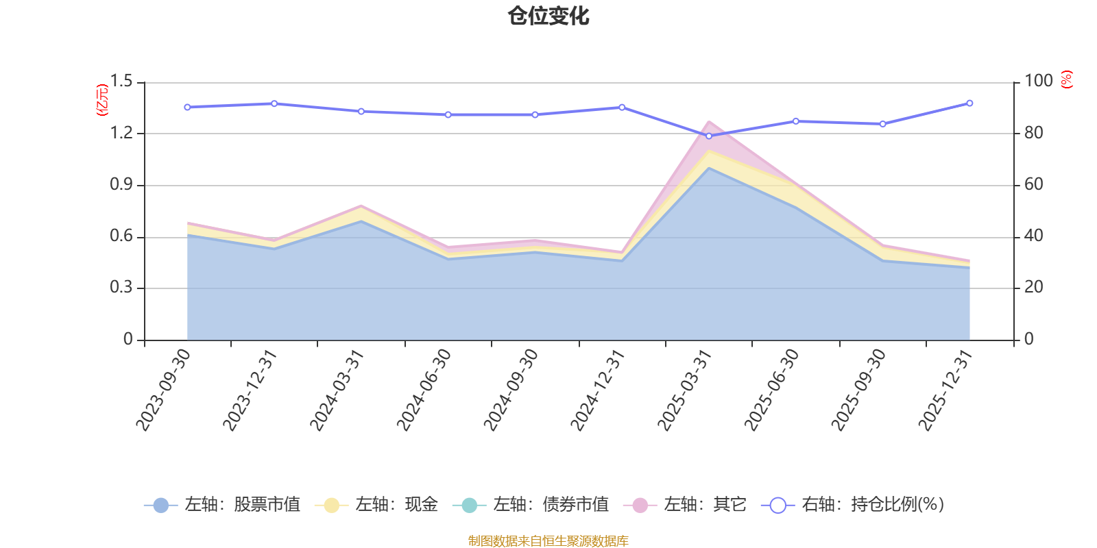 据定期报告数据统计,成立以来平均股票仓位为87.55%,同类平均为84.04%。2025年末基金达到91.88%的最高仓位,2025年一季度末最低,为79.13%。