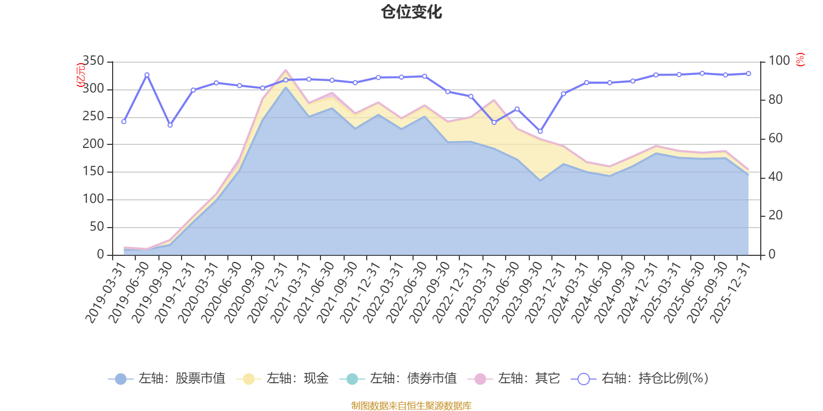 据定期报告数据统计,近三年平均股票仓位为85.61%,同类平均为86.9%。2025年上半年末基金达到93.96%的最高仓位,2023年三季度末最低,为63.99%。