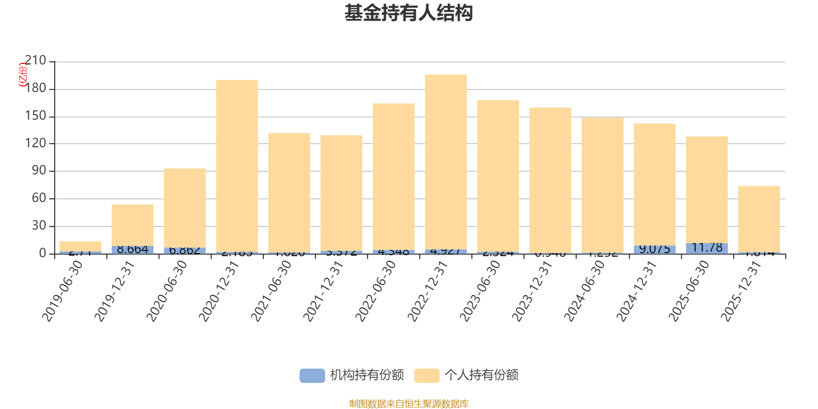 截至2025年12月31日,基金持有人共计100.83万户,合计持有74.05亿份。其中管理人员工持有42.88万份,占比0.01%,机构持有份额占比2.45%,个人投资者占比97.55%。