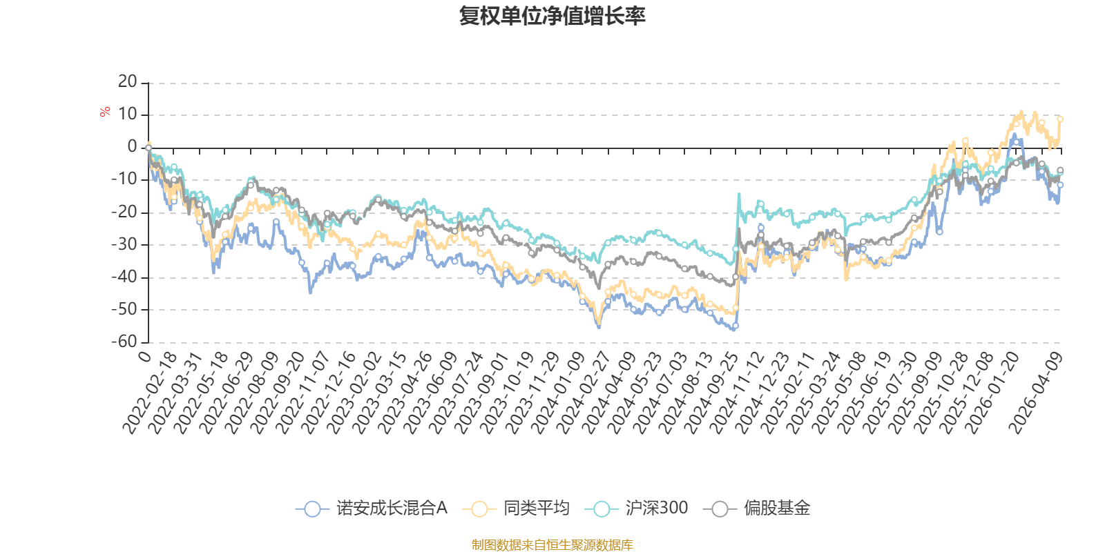 截至4月9日,诺安成长混合A近三个月复权单位净值增长率为-11.43%,位于同类可比基金213/229;近半年复权单位净值增长率为-8.44%,位于同类可比基金190/229;近一年复权单位净值增长率为31.74%,位于同类可比基金190/229;近三年复权单位净值增长率为18.36%,位于同类可比基金126/171。