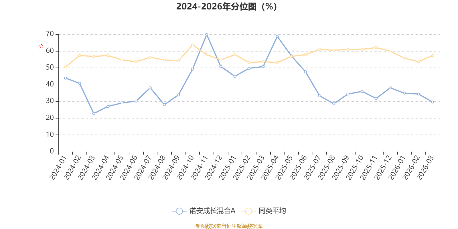 通过所选区间该基金净值增长率分位图,可以观察该基金与同类基金业绩比较情况。图为坐标原点到区间内某时点的净值增长率在同类基金中的分位数。