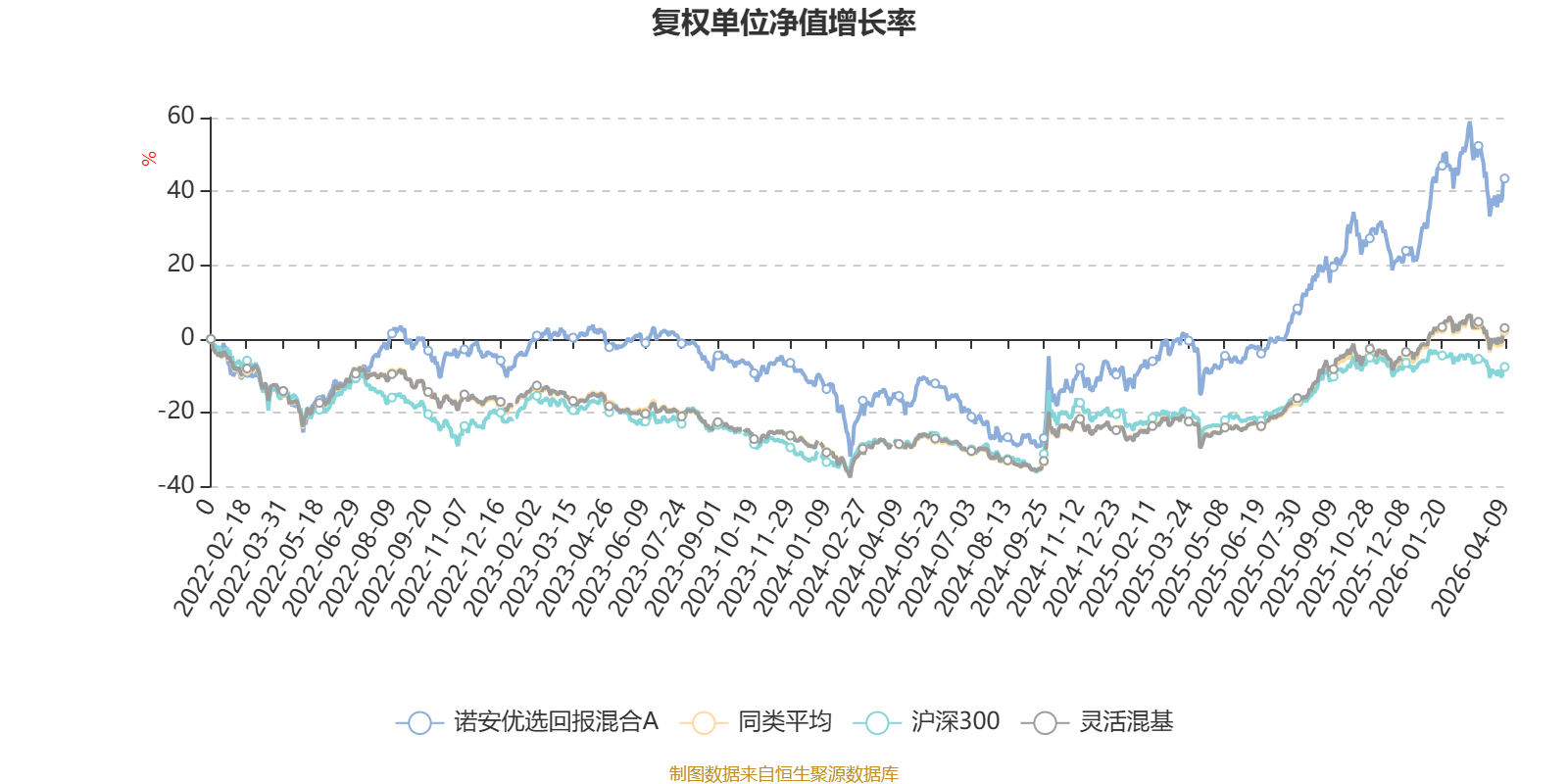 截至4月9日,诺安优选回报混合A近三个月复权单位净值增长率为-0.15%,位于同类可比基金589/1287;近半年复权单位净值增长率为6.74%,位于同类可比基金346/1286;近一年复权单位净值增长率为64.66%,位于同类可比基金218/1286;近三年复权单位净值增长率为38.24%,位于同类可比基金239/1286。