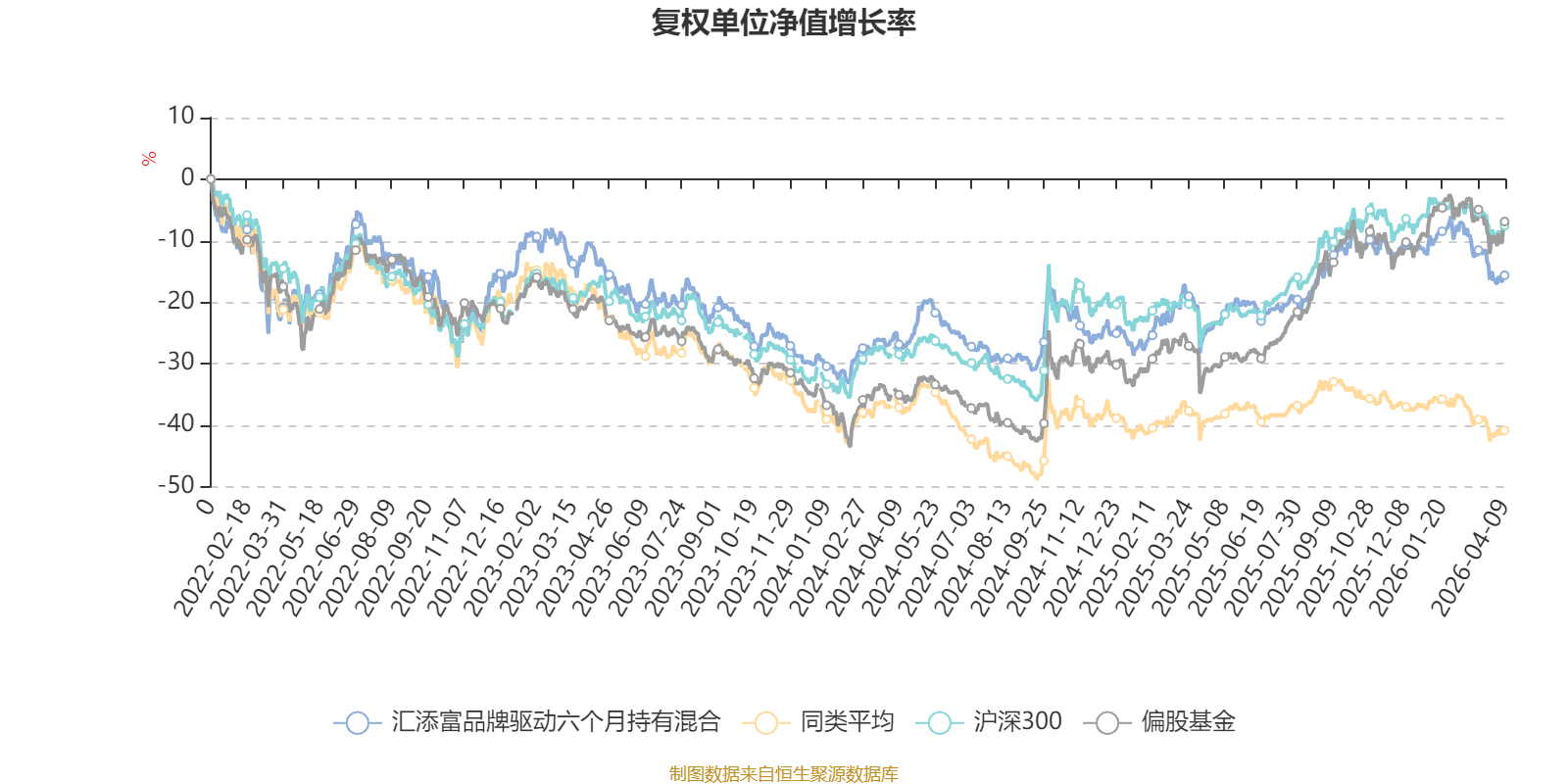 截至4月9日,汇添富品牌驱动六个月持有混合近三个月复权单位净值增长率为-5.93%,位于同类可比基金21/85;近半年复权单位净值增长率为-8.92%,位于同类可比基金30/85;近一年复权单位净值增长率为14.16%,位于同类可比基金10/85;近三年复权单位净值增长率为-5.26%,位于同类可比基金10/76。